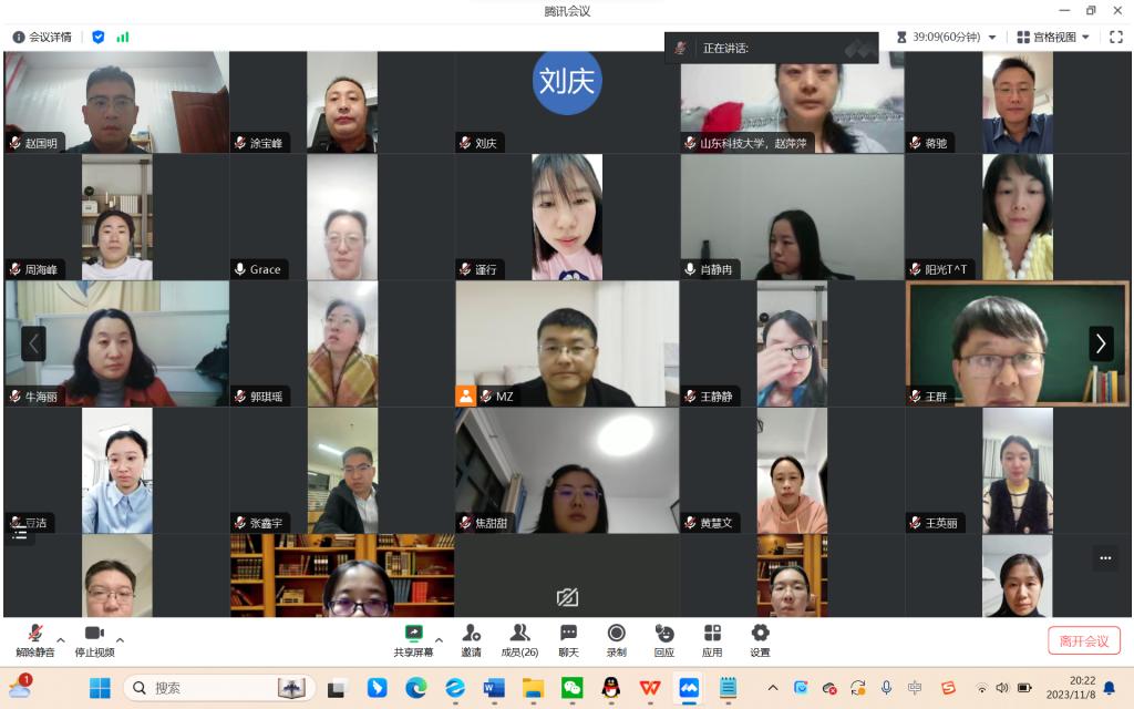 118日,现场足球成绩 化工系在线上组织召开期中教学检查工作会议。会议由系主任徐冬梅主持,徐冬梅老师传达了关于期中教学检查的相关事宜,肖静冉老师讲解了《山东科技大学教学工作量核算暂行办法》,化工系全体教师参加会议。