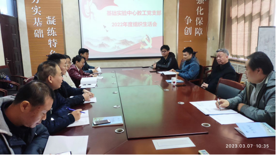 关于召开2022年度党支部组织生活会和开展民主评议党员、党支部书记抓党建述职评议、党支部评星定级工作的通知》的安排,3月7日,基础实验中心教工党支部召开“凝心聚力,统一思想,深入学习贯彻党的二十大精神”专题组织生活会,并开展了民主评议党员工作。会议由党支部书记崔科同志主持,院长吕宪俊同志对会议进行了指导和点评,现场足球成绩