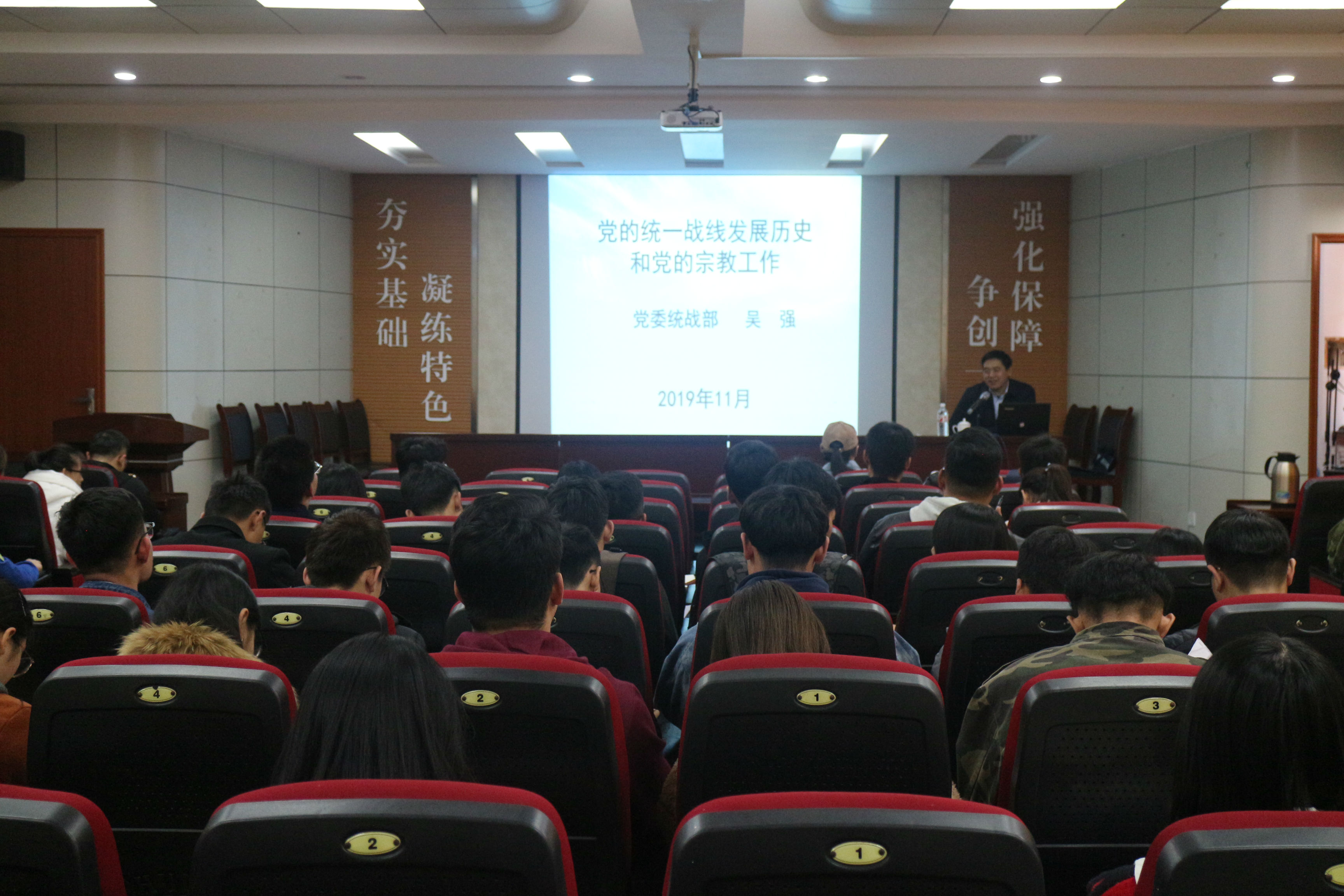11月15日,校党委统战部部长吴强应邀为现场足球成绩 党员发展对象讲党课,党课主题为“党的统一战线发展历史和党的宗教工作”。