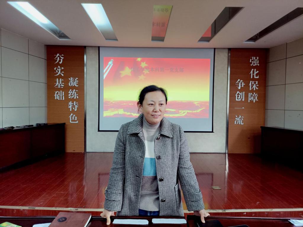 会上,本科第一党支部书记李玲玲老师带领大家集中学习了党的十九届五中全会精神部分内容。李老师讲到,全会重点研究了国民经济和社会发展第十四个五年规划以及2035年远景目标问题,浓墨重彩地描绘了人民幸福、民族复兴的宏伟蓝图,审议通过的《建议》为我国未来发展五年发展制定了目标、提出了举措,是新时代中国特色社会主义道路进程中的又一重要里程碑。