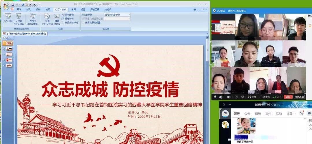 党支部集体学。各学生党支部积极发挥基层组织作用,组织全体党员集体学习,党员撰写学习心得,并通过学习强国学习群、QQ群等进行线上讨论,交流感悟,相互促进,共同学习。