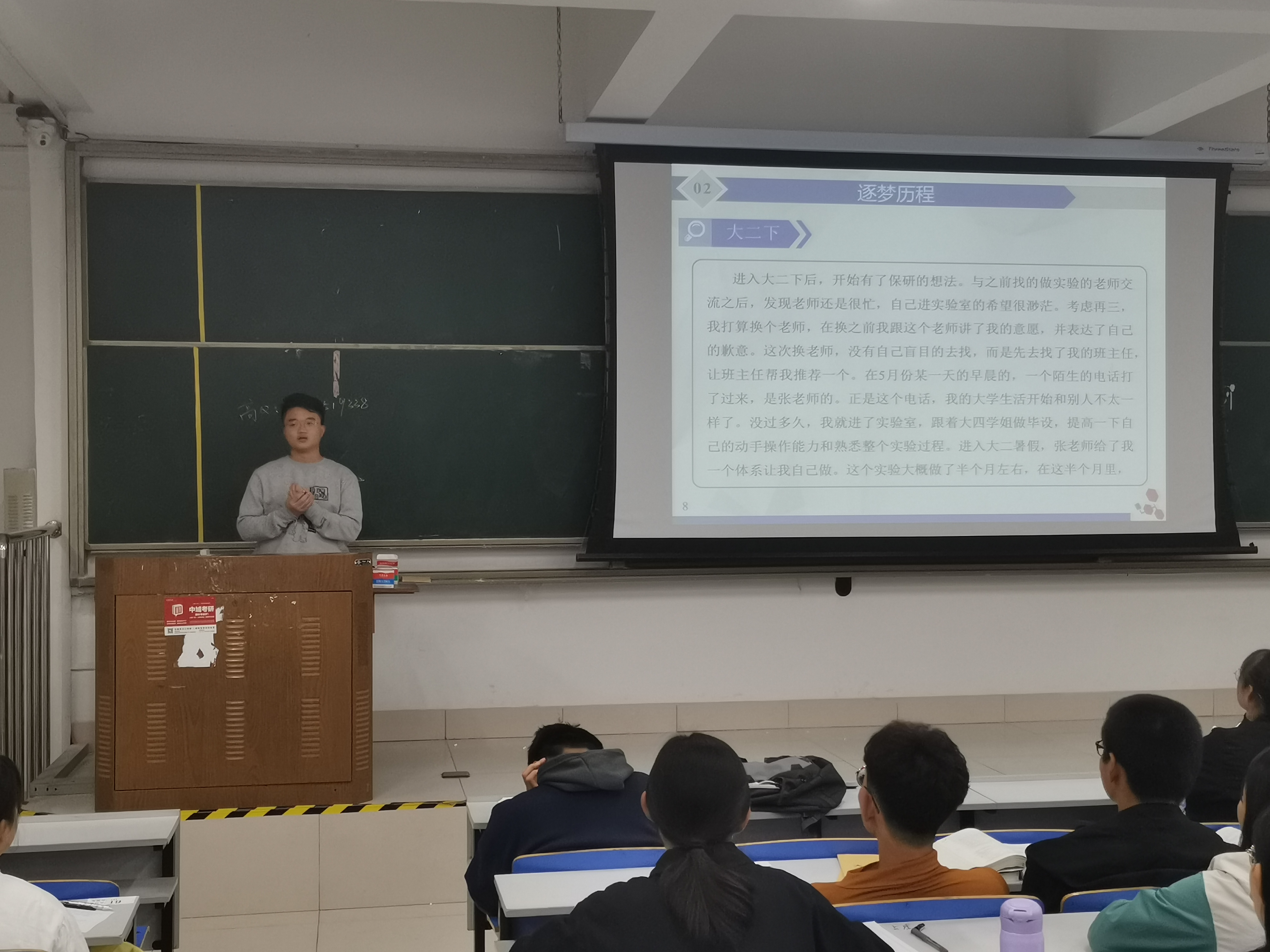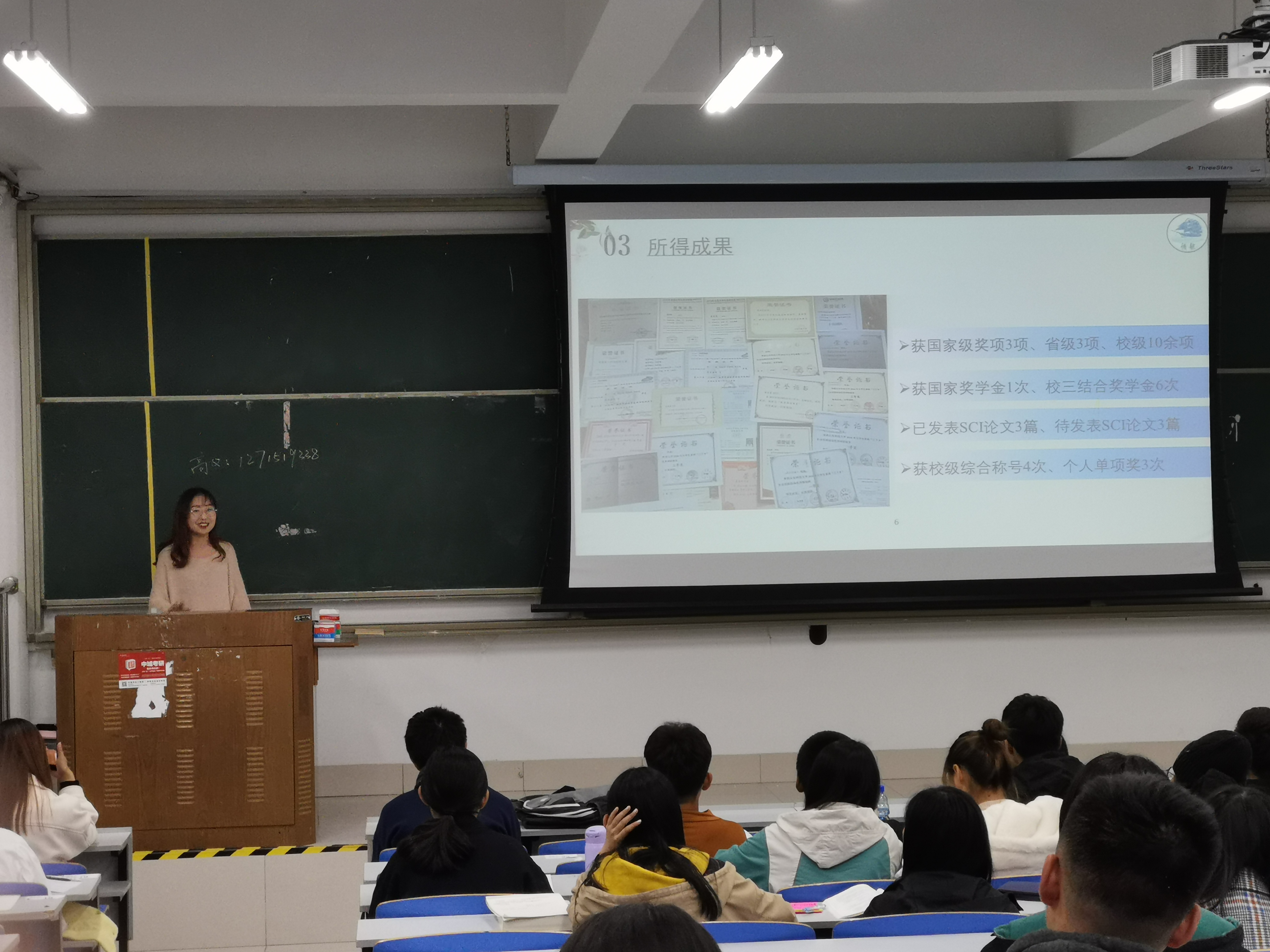 学风建设的重要项目,每年11月启动,已历经三年,主要内容是由保研同学组成领航宣讲团,分批次向低年级学弟学妹分享大学经历,以正学风促成才。参与本次宣讲的四位同学均以优异的成绩被保送至知名重点大学,他们以PPT讲述的形式向在场同学介绍了三年多的大学历程,展示了各项荣誉奖励,分享了学习工作感悟。他们以自己在大学的成长历程告诉新生同学,一方面,要不忘初心,认识到学习是首要任务,唯有时刻检视初心,刻苦钻研,才能不负青春韶华。另一方面,要牢记使命,大学生的使命是为祖国为人民努力学习,立志成长成才,为国为民奉献,在追求理想的过程中难免忙碌甚至疲惫,但也收获充实快乐,成就个人价值。