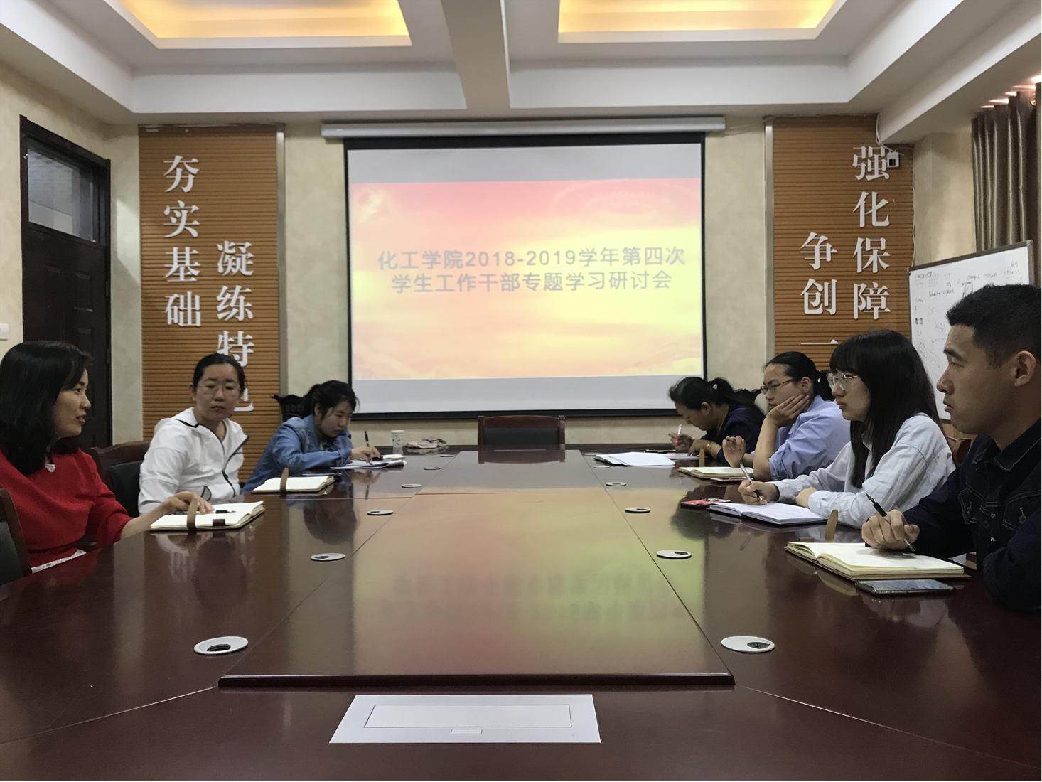 学团工作干部开展本学期第四次专题学习研讨。团委老师易凡主持学习研讨。