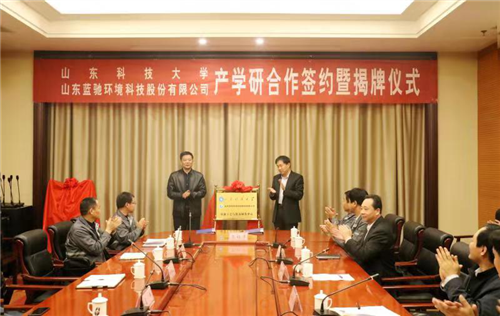 和企业签署了校企合作协议书,李垂文与安丘市副市长冷文清为新成立的环保工艺与装备研发中心和校企产学研合作基地揭牌。