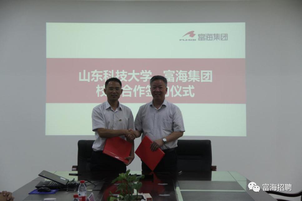分别与山东鑫海矿业技术装备股份有限公司和富海集团签订校企合作仪式,设立山东科技大学创新创业实践基地。其中,富海集团在我校设立山东科技大学“富海”奖学金。