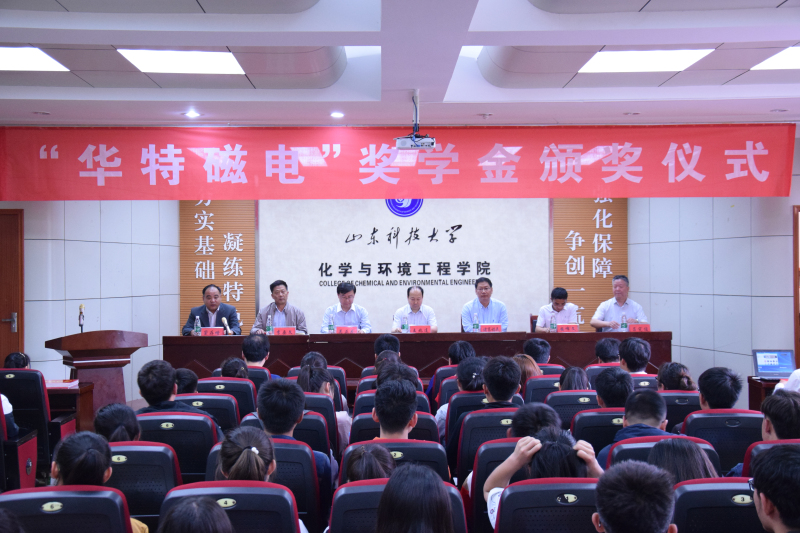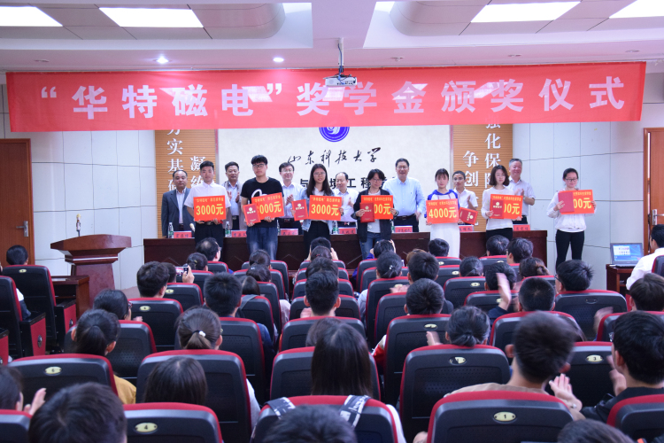的支持及帮助表示感谢,对公司领导支持教育、回馈的社会的善举表示崇高敬意。他希望同学们志存高远,不断超越自我,常怀感恩之心,用优异的成绩回馈社会。矿物加工工程2014级张文进代表获奖学生上台发言。山东华特磁电科技股份有限公司董事长王兆连对获奖同学表示祝贺,他说企业的发展离不开山东科技大学领导、相关学科老师的支持和帮助,感谢学校向企业输送了一大批高质量人才。他介绍了公司发展历程及取得的系列成果,表示企业会继续承担起社会责任,在新旧动能转换中发挥排头兵作用。他诚挚邀请与会领导、师生到公司参观交流,近距离地了解公司。