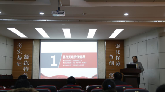报告厅召开2017年度党支部书记抓党建工作述职评议会,姚庆国副校长带领统战部吴强部长等督导组成员与会指导。现场足球成绩