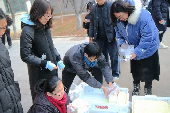 生物工程专业2017级学生将自己在生产实习过程中亲手制作的豆腐送到老师手里,表达内心对老师的感恩与祝福,为寒冷的冬天送来一股暖流。