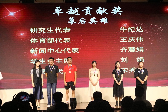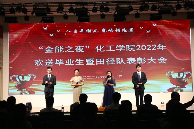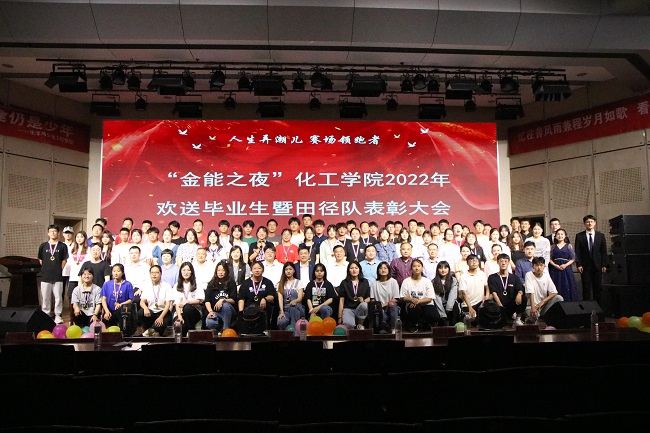 在大学生活动中心二楼报告厅举办“金能之夜”2022年欢送毕业生暨田径队表彰大会。金能化学(青岛)公司总经理伊国勇,校研究生院院长韩作振,校团委书记尹立明,体育现场足球成绩