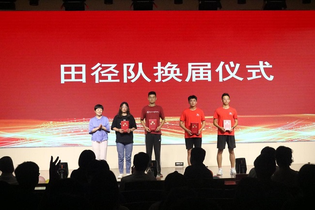 田径队换届仪式上,田静为新任教练赵良朔、孙源超、耿继栋、李怡颁发聘书,老教练田相龙、新教练赵良朔进行了小黄衫交接仪式。田相龙在发言中总结了一年来田径队的努力奋斗和辛苦付出,向取得骄人成绩的田径队队员们表示祝贺,表达了对新一届田径队的期望和信心;赵良朔表示将继续传承化工田径队精神,有信心有决心带领田径队取得新的荣誉,铸造新的辉煌。