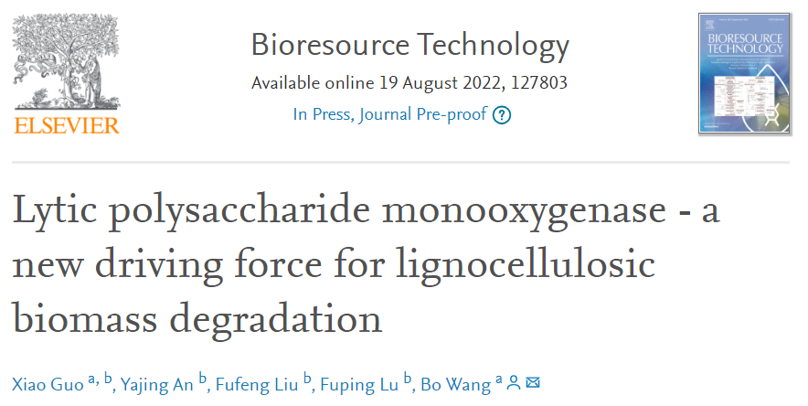 王博教授科研团队以裂解性多糖单加氧酶为主题获得新进展。相关成果以Lytic polysaccharide monooxygenase - a new driving force for lignocellulosic biomass degradation为题在线发表在国际学术期刊Bioresource Technology上(中科院一区,最新IF = 11.8883)。
