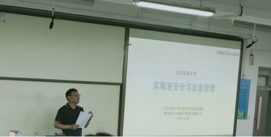 实验室化学品安全事故应急处置培训内容包括:海尔生物医疗安全培训总监、国家注册安全工程师李公海老师主讲应急预案的实施;应急疏散要点;常见事故应急救援处置要点;突发化学品安全事故的自救与控制措施。