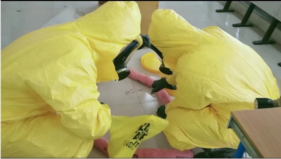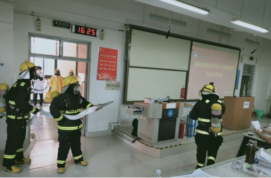 实验室化学品安全事故应急演练包括:在S1-303教室模拟分析测试实验室(S1-303)金属钠引爆着火现场处置场景,演练实验室处置及启动应急预案的流程。