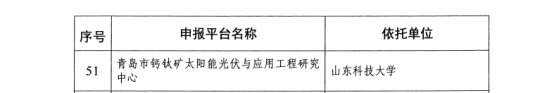 独立组建的青岛市钙钛矿太阳能光伏与应用工程研究中心正式获批成立。