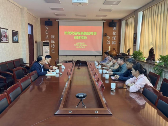 的热忱接待,介绍了明泉集团的发展沿革及竞争优势,阐述了企业人才培养机制和薪酬福利体系,希望未来能深化校企合作,促进双方共同发展,实现优势互补、合作双赢。