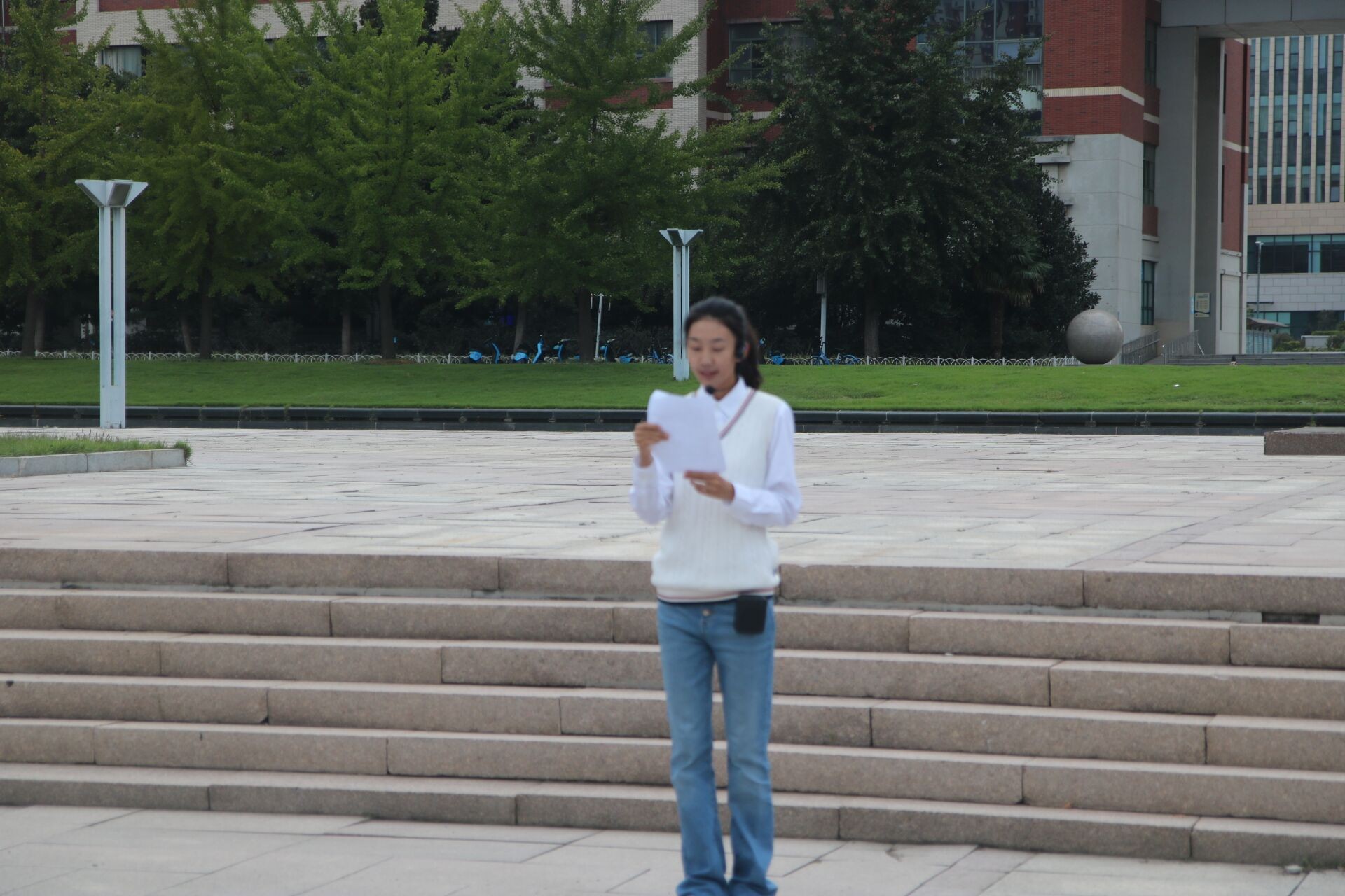 本科生新生代表王冠在国旗下发表题为《铭记历史,开创未来》的演讲。她号召同学们珍惜大学时光,树立远大理想,将个人成长融入国家发展,秉承“惟真求新”的校训精神,努力成为有理想、敢担当、能吃苦、肯奋斗的新时代人才。