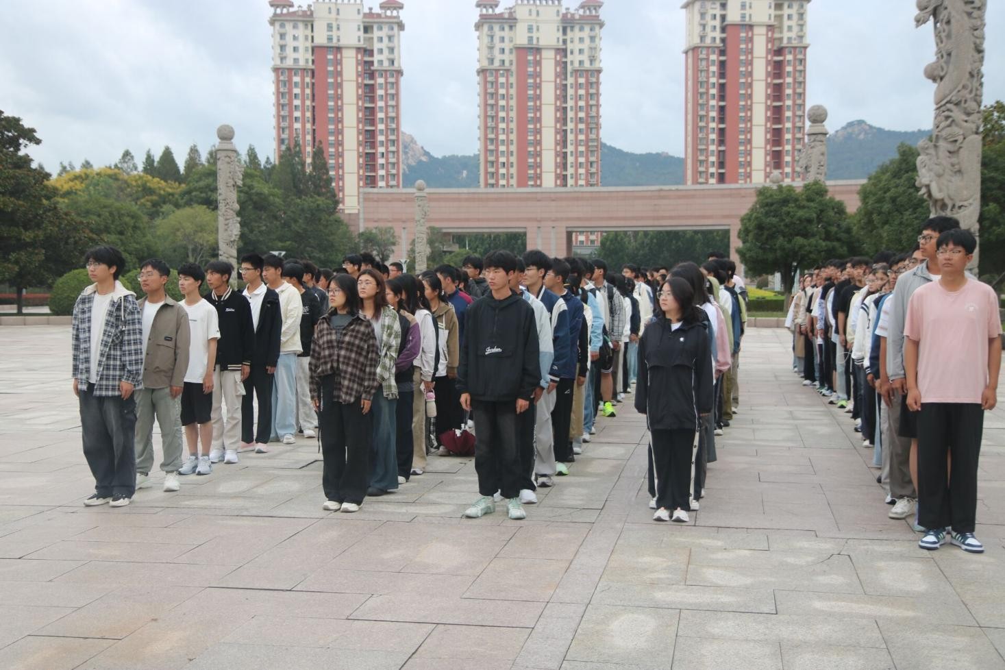 2025级新生辅导员李玲玲老师及全体新生整齐列队,共同参加此次活动。