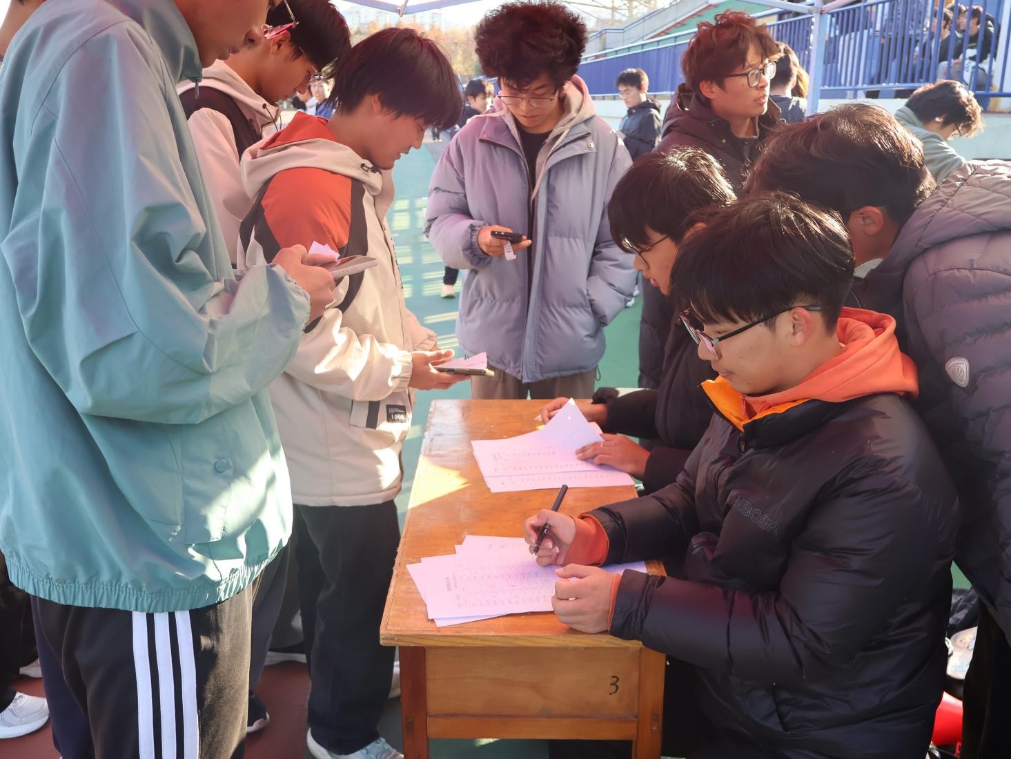 下午2时整,赛事正式拉开帷幕。各班级代表队精神抖擞,整齐列队,在专业热身指导后进入备战状态。发令枪响,运动员如离弦之箭奋勇出发,在深秋的赛道上挥洒青春汗水,展现出化工学子昂扬向上的精神风貌。为确保赛事专业有序进行,现场足球成绩