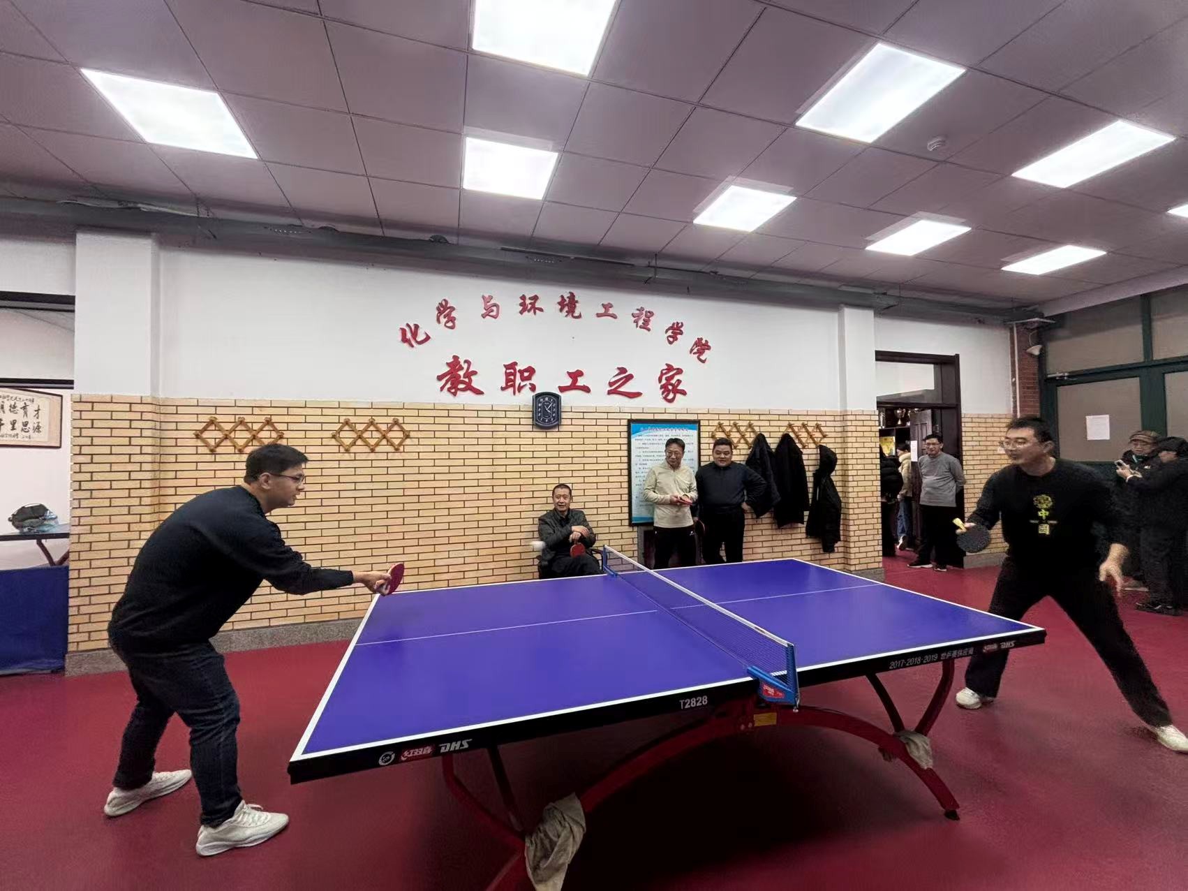 比赛采用循环积分制,设有单打、双打等环节,现场赛程紧凑、对抗激烈。教职工们一改平日的严肃稳重,在球台前步伐灵动、攻守有度,既有沉稳的控制,也有凌厉的进攻,精彩回合不断引发阵阵掌声。赛场边,队友的助威声、欢笑声此起彼伏,气氛热烈融洽。经过多轮角逐,机关代表队最终摘得团体冠军。