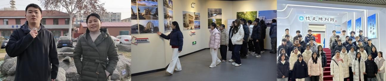 经过充分准备,三校区同上一堂思政课的创新实践火热开启。首先,易凡以简单的新年问候开篇,随后,三校区师生百余人跟随济南校区主讲老师卓国梁、贺建芹漫步校园的镜头,以“文脉赓续”为线索,“云逛”济南校区。两位老师时而缓步漫谈,时而驻足介绍,时而回顾校史,让泰安、青岛校区的同学对济南校区有了较为全面的了解。接着,镜头切换至泰安校区,主讲老师杨文园带领师生走进泰安校区校史馆,一帧帧老照片记录建校初期历程,一件件旧教具承载育人初心,校史底蕴与山科校训深度交融,让师生深刻体悟到了“坚韧不拔、奋发图强”的科大精神;接下来,视角转入素有“江北最美校园”美誉的青岛校区,易凡带领师生走进校史馆,由专业讲解员向大家介绍我校在“两校并立融合、山东煤矿现场足球成绩