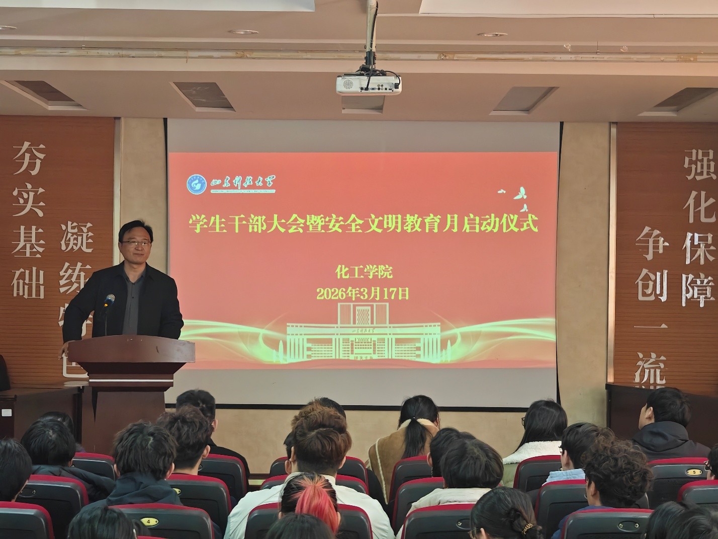 安全文明教育月,相关活动正式启动。他指出,安全是发展的基础,文明是成长的底色。全体师生必须始终绷紧安全弦,践行文明行为。他强调全体学生干部要主动担当、积极作为,将安全文明工作“扛在肩上、抓在手上”,共同营造安全、文明、和谐的育人环境。随后,易凡、李玲玲、孙梦柯分别就实验室安全、学生心理健康教育和田径队员运动安全防护提出了具体要求。