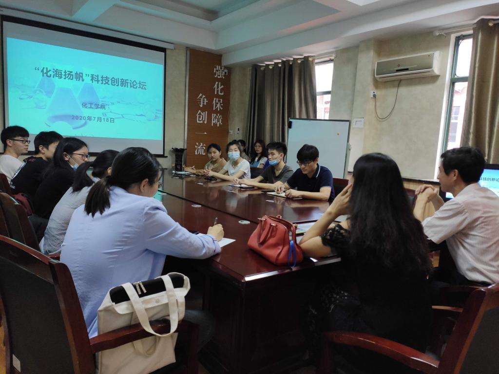 在J2-431举办“化海扬帆”科技创新论坛。本次论坛由团委书记易凡主持,葛圣松教授主讲,就近期推进的挑战杯赛事进行指导,参赛队员、指导教师代表以及现场足球成绩