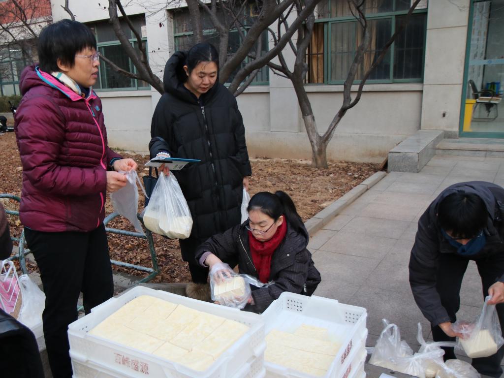 生物工程专业2017级学生将自己在生产实习过程中亲手制作的豆腐送到老师手里,表达内心对老师的感恩与祝福,为寒冷的冬天送来一股暖流。