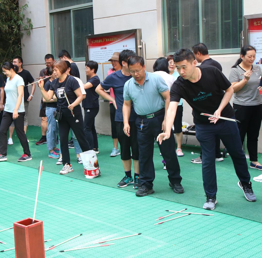 教工根据所在部门、系(中心)分为6支队伍,以集体形式进行比拼。投壶现场,一支支道具箭从手中抛出,每个人都期待着箭入方壶;运输小队项目是用箭夹乒乓球接力,运输大队项目是两人夹气球接力,考验的是平衡能力和团队合作。跳绳作为喜闻乐见的运动项目,老师们积极踊跃参与,一展身手。运动会不但是智慧和体力的角逐,更是团结和协作的比拼。现场参赛教职工兴致盎然、斗志昂扬,现场气氛热烈,掌声笑声不断,大家其乐融融。