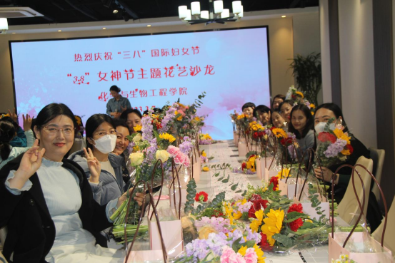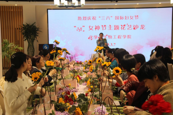 工会举办了手提花盒插花花艺沙龙活动。插花前,花艺师介绍了花卉品种、插花审美、插花造型、色彩搭配、鲜花花语等内容。女教工们在花艺师现场示范和指导下,结合个人审美,进行插花创作。插花过程中大家互相交流、互赏花艺,享受自己动手创造美丽的快乐。本次插花活动用花木来抒发女教职工的高雅情怀,以花感人,以花育人,培养了女教职工知美、爱美、会美的美好生活情趣。老师们纷纷表示活动贴心、用心、有品位,这个节日过得太开心太幸福了。