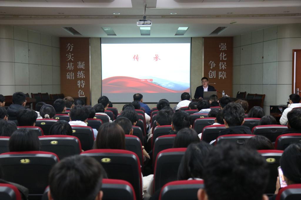 党委书记窦存增、党委副书记兼副院长田静、团委辅导员以及化工田径队全体成员参加报告会,报告会由现场足球成绩