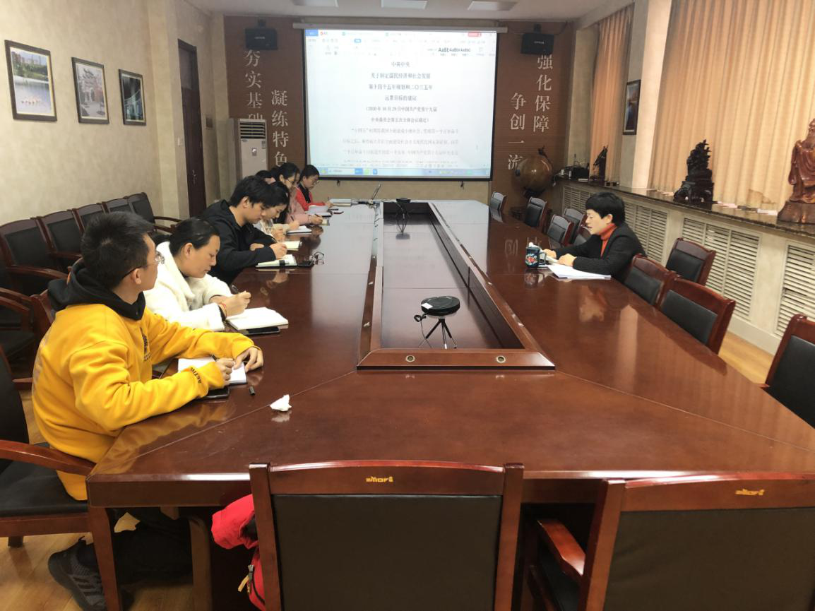 会上,田书记带领大家学习了全会通过的《中共中央关于制定国民经济和社会发展第十四个五年规划和二〇三五年远景目标的建议》,重点学习了关于教育和创新的内容。规划《建议》阐述了决胜全面建成小康社会的成就、我国发展的环境、2035年远景目标、“十四五”时期的指导思想、原则和主要目标,分领域阐述了“十四五”时期经济社会发展和改革开放的重点任务。
