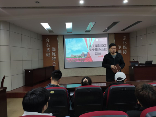 在J2-104报告厅开展“SKS曳步舞协会”专项社团指导活动。此次活动由SKS曳步舞协会指导老师徐华坤主持,曳步舞协会全体会员到场参加。
