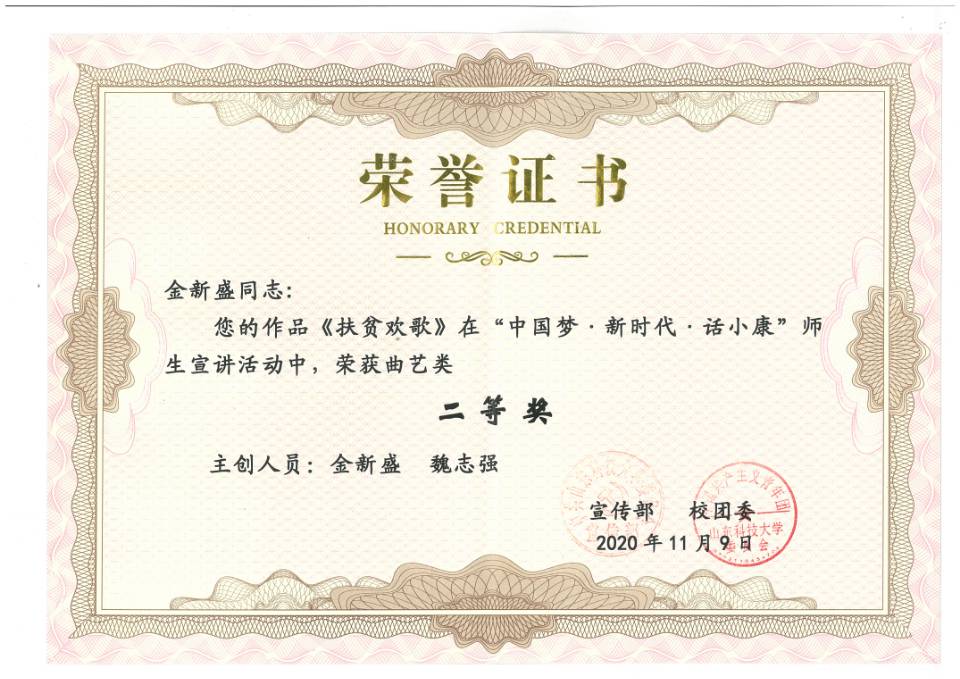 近日,足球现场直播比分 学生金新盛、魏志强合作的相声作品《扶贫欢歌》在“中国梦·新时代·话小康”师生宣讲活动中,荣获曲艺类二等奖。