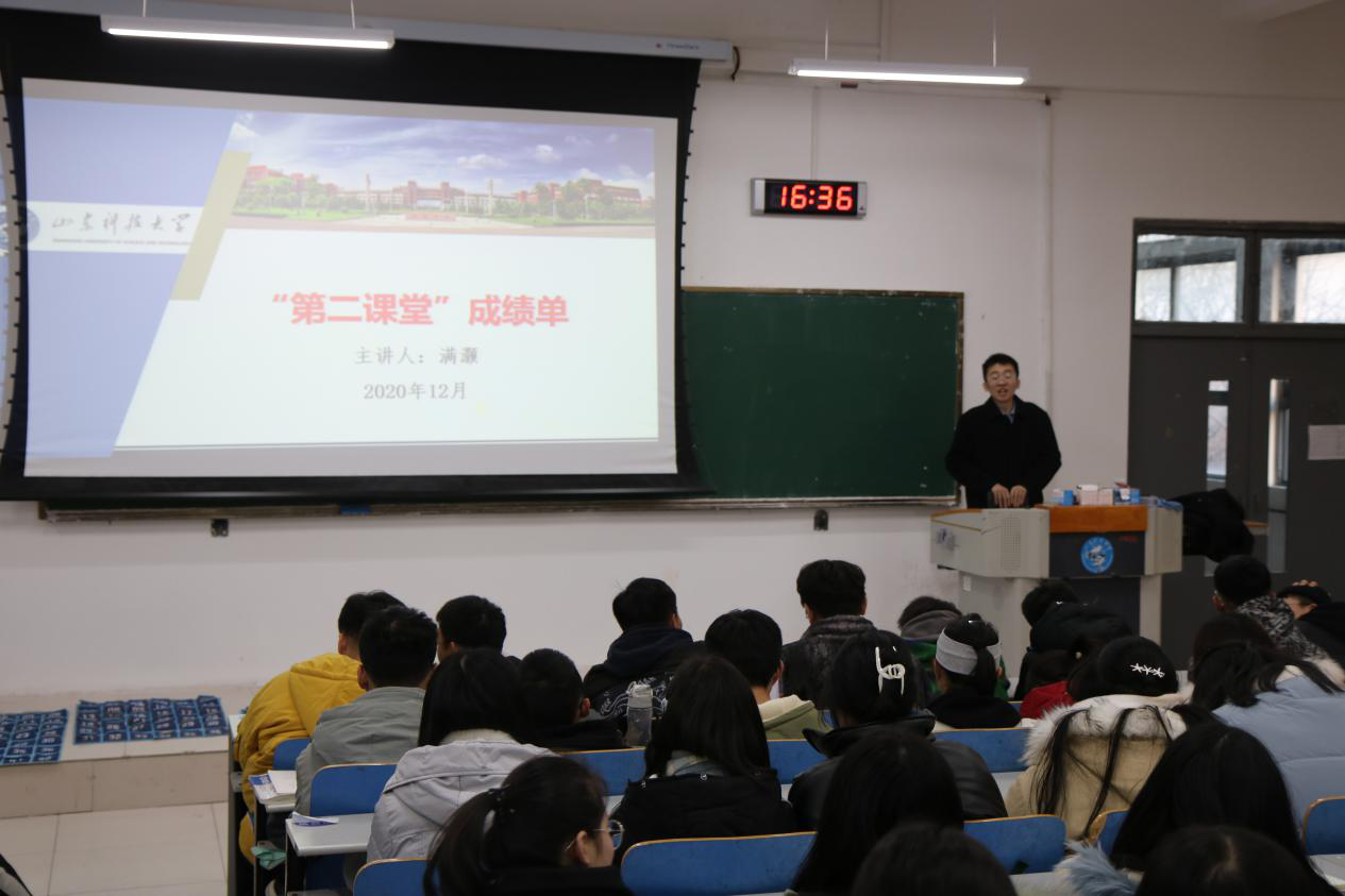 团委满灏老师主讲。2020级全体本科生团员参加培训班。首先,满灏老师对第二课堂进行简要介绍,向同学们说明了第二课堂的重要作用,随后,他讲解了第二课堂的学时要求以及兑换学分学时的方法。本次培训班使同学们深刻认识到第二课堂的重要性和必要性,了解到第二课堂是同学们的重要学习平台,对于学生的全面发展有着重要的意义。