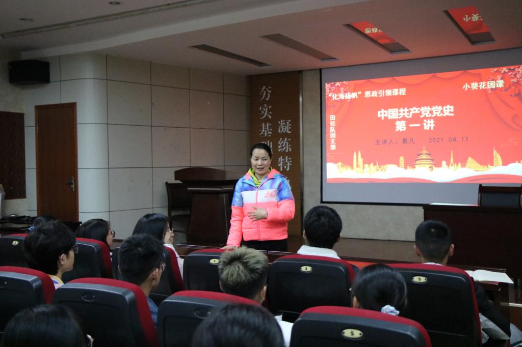 会上,易凡老师首先为大家概述了中国共产党一百年的辉煌历史,号召全体队员认真学习党史,提升思想政治素养,其次,她就安全、坚持、学习三个方面和田径队员们进行了交流,提醒同学们在训练时安全第一,激励队员们勇于追求“更高,更快,更强”的目标,为现场足球成绩