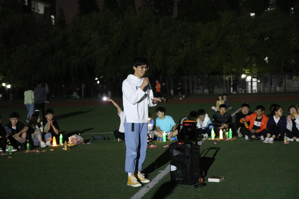 在之后的表演环节中,到场的老师给大家带来了重重惊喜:2020级辅导员满灏老师献唱《没有共产党就没有新中国》和《奔跑》,伴随着同学们的自发合唱和热烈掌声,让同学们不由得惊呼“今天看到了不一样的满老师,但都是一样的贴心满满”;2019级辅导员李玲玲老师为大家带来《打靶归来》和《最浪漫的事》,第一首的激昂动听歌声让同学们想起了战士打靶的场景,第二首更是唱出了全体辅导员的心声:“我能想到最浪漫的事,就是和你们一起慢慢变老……”;随后,易凡老师一首气势磅礴的《精忠报国》,让在场同学禁不住回想起近代百年的中国史,跟着她一起唱出了青年学生精忠报国的热情,并一起喊出了“化工化工谁与争锋”的运动会口号,掀起一个小高潮;最后,2018级辅导员徐华坤老师演唱《踏山河》,全体同学倾情跟唱并打开手机手电筒左右摇摆------一百多部手机的熠熠光芒与天上的闪烁星光遥相呼应,歌声、星光和掌声不仅让到场师生倍觉幸福美好,而且惊艳了风雨操场的所有行人。一位来自塔吉克斯坦的大二留学生被歌声感动驻足不愿离去,主动提出为大家唱首歌,主持人以中国人特有的热情友善把他请到圈中,他满含柔情地为大家演唱了一首英语歌曲《PERFECT》,给这场红歌会带来了异国情调和别样惊喜。