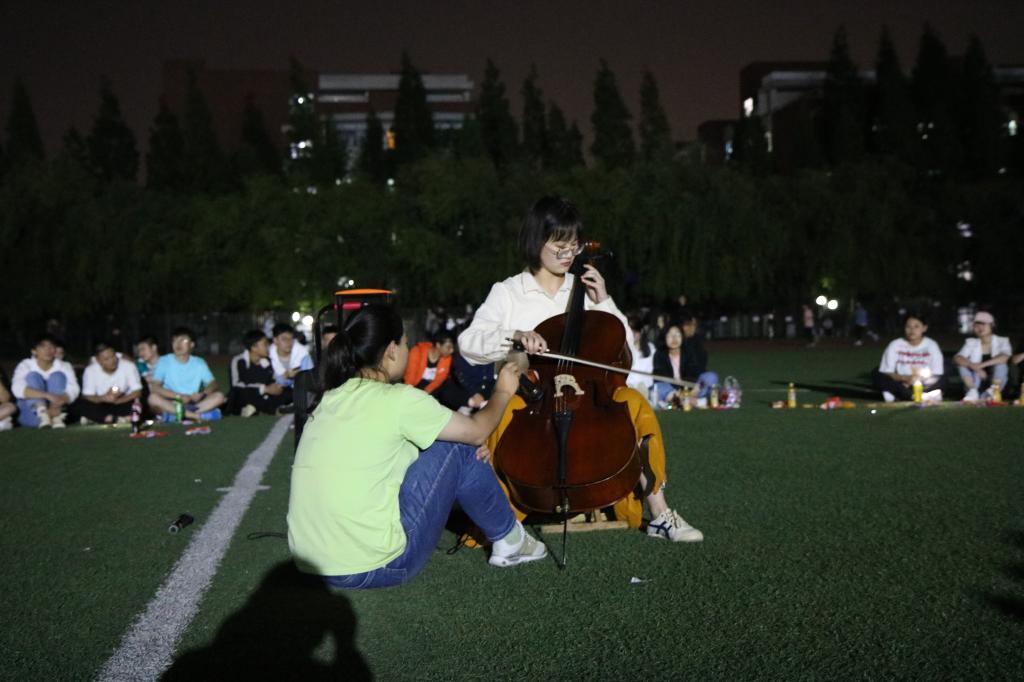 留学生表演结束后,主持人宣布团日活动进入团支部成员表演环节,团支部成员孙铭泽大提琴独奏《lemon》《我和我的祖国》,悠扬的琴声随着夜风,流进了每一个人的心里;王阳为大家带来的太极拳、白雪晴等四人展示的少林长拳 ,让同学们不由得感叹中华武术的博大精妙;随后,田径队团支部全体成员合唱《朋友》和《山东科技大学校歌》,让大家不仅深深感动于田径队团支部大家庭带来的友爱和温暖,而且抒发了身为科大学子的自豪,表达了对70周年校庆的美好祝福。最后,团支部副书记谢莹一首《再见》让本次主题团日活动完美收官。