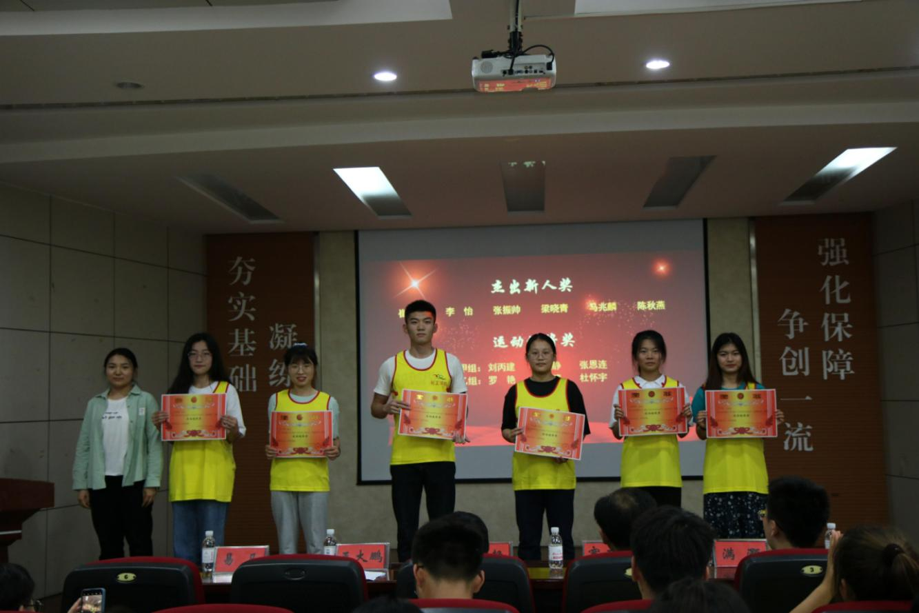 会上,崔粲等6名大一同学获“杰出新人奖”,罗艳等6名运动员获“运动健将奖”,邴晓滨等12名运动员获“功勋成就奖”,任晓聪等8名运动员获“杰出贡献奖”,上任田径队团支部书记、田径队总教练李彦钊获“卓越先锋奖”,赵良朔等12名运动员获“田径精神奖”,现场足球成绩