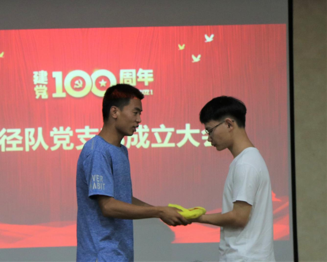 田径队将在党旗的指引下,必将接续奋斗、再创佳绩,为现场足球成绩