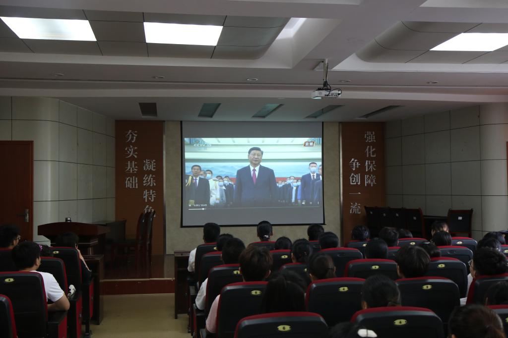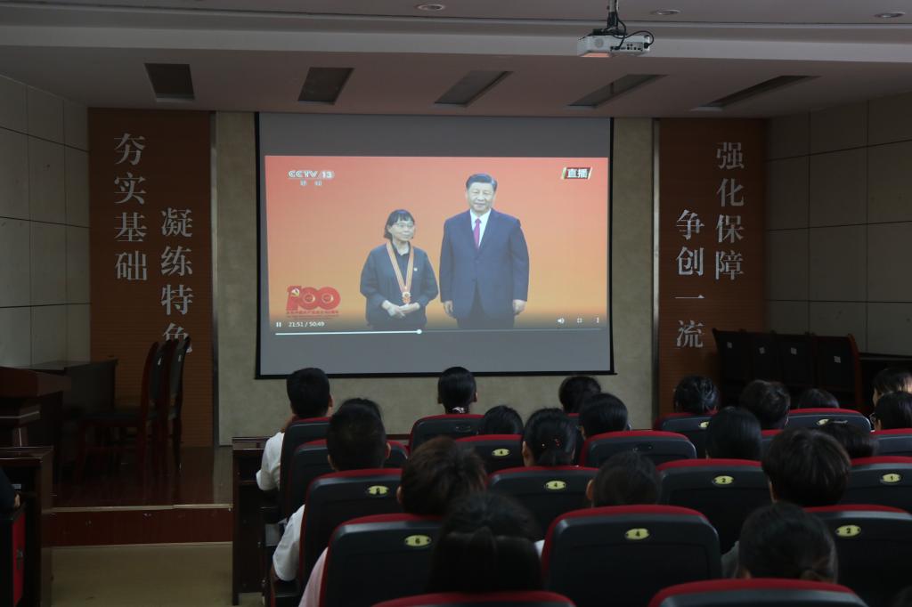 “小葵花”系列团课暨田径队“七一”特别主题团课于J2-104开讲。本次课程由团委书记易凡主持,田径队团支部全体成员到场学习。这次课程以集体观看“七一勋章”颁授仪式视频的形式呈现。大家一道观看了“七一勋章”颁授仪式视频,当看到习近平总书记为丽江市华坪县女子高级中学党支部书记、校长张桂梅老师颁授“七一勋章”时,报告厅内响起持久的掌声,全体与会人员自发起立向“七一勋章”获得者致敬。观看结束后,大家纷纷表示,内心深受洗礼,被勋章获得者们矢志向党、鞠躬尽瘁的先进事迹所感动不已。其中,田径队团员代表徐梦婷说道:“2021年是建党100周年,也是全面开启中国特色社会主义现代化建设新征程的第一年。团作为党的助手和后备军,我们团员青年更要以实现中华民族伟大复兴为己任,坚定理想信念,将青春融入党和人民事业之中,向党和国家交上一份满意的答卷。”