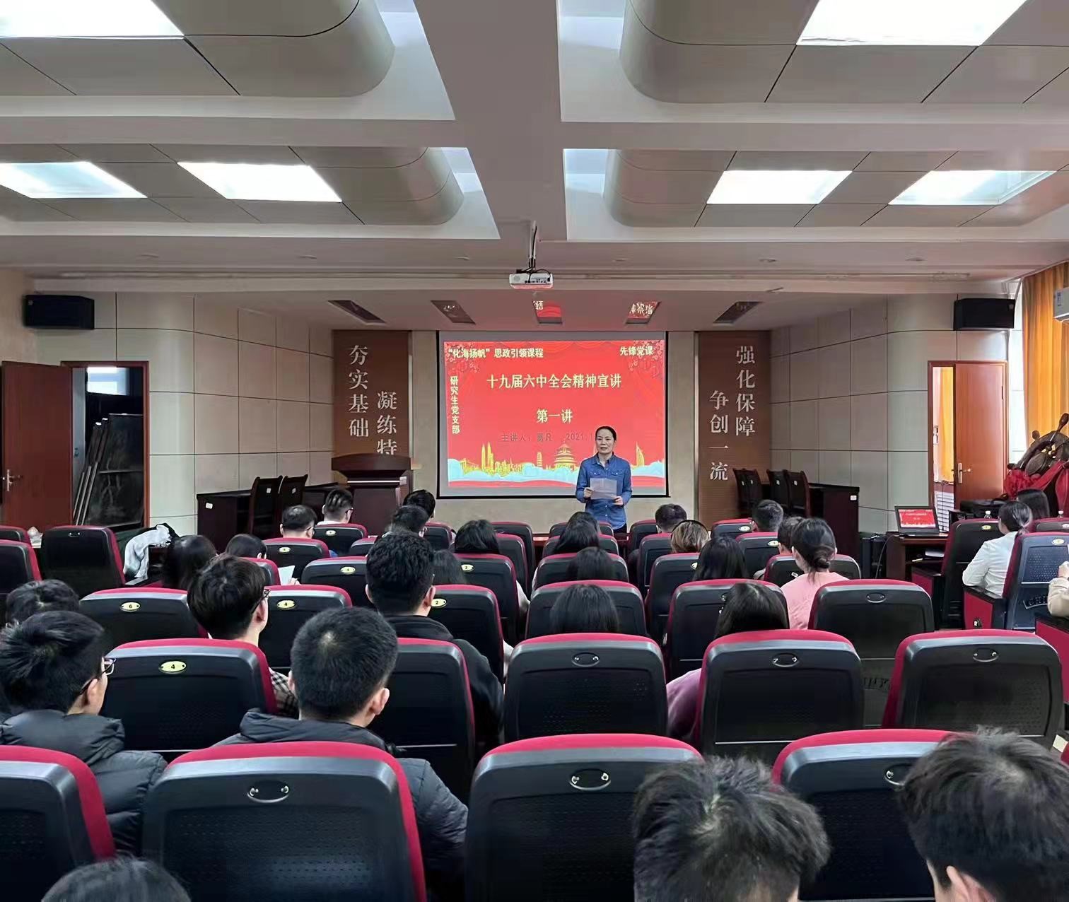 全体研究生党员到场聆听党课。