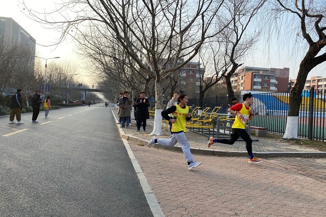 下午一点半,化工健儿们就已经早早来到操场,进行充分全面的热身运动。开幕式过后,比赛正式开始。本次比赛分为男子组、女子组两个组别。随着枪声响起,女子组率先出发,她们迈着矫健的步伐,在寒风中驰骋。五分钟后,男子组也加入征程,队员们奋力奔跑,英姿飒爽的“小黄衫”在校园里形成了一道亮丽的风景线。