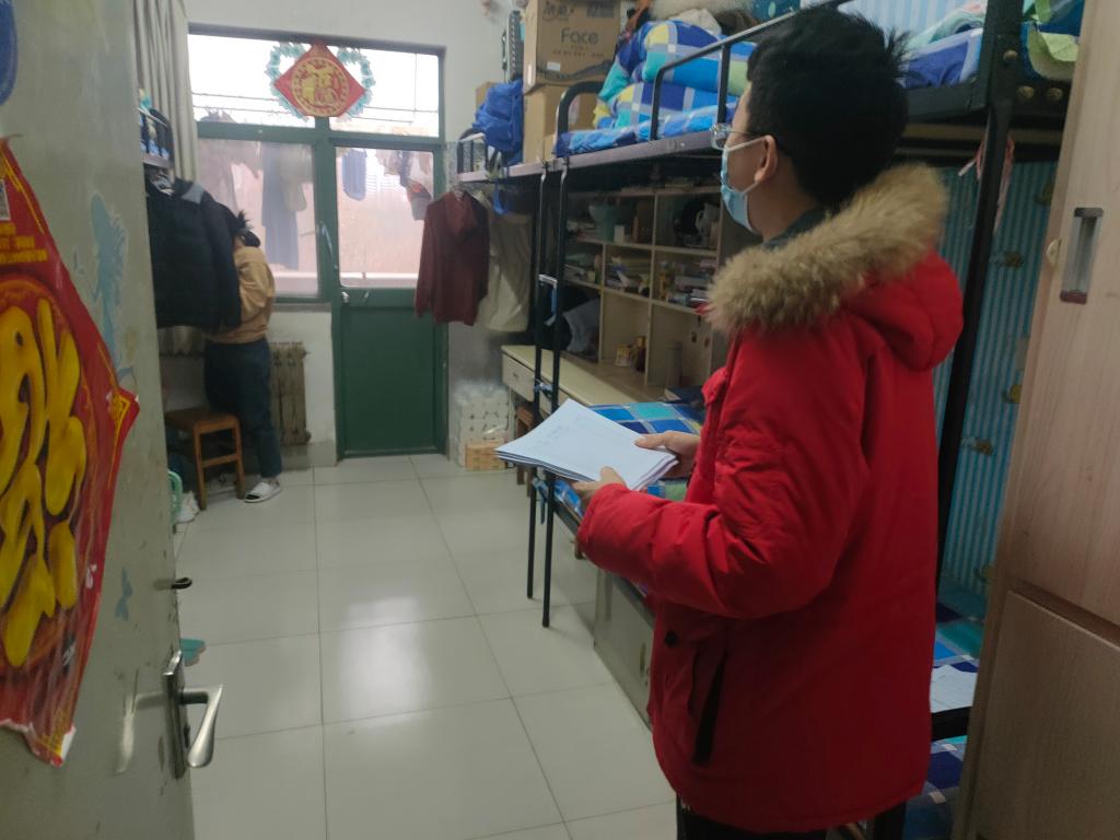 党委副书记兼副院长田静工作已30个年头,接到工作任务后,没有任何迟疑,带头打起行囊当夜搬入学生宿舍;辅导员王大鹏的儿子刚刚一岁,每天晚上都要伏在爸爸的肩膀上才能入睡,但当接到通知后,纵然妻子亦身在单位抗疫一线,二话没说毅然决然搬进学生宿舍;辅导员徐华坤辞别刚订婚的未婚妻,雷厉风行搬入学生宿舍;辅导员满灏克服身体不适,紧急打包迅速搬进学生宿舍。自此,由田静率队,辅导员王大鹏、徐华坤、满灏组成的“先锋队”,齐心协力,密切配合,奋战在抗疫的第一线。