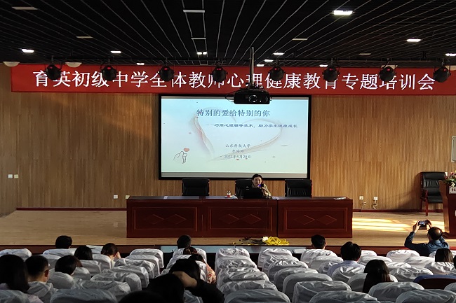 应青岛西海岸新区育英初级中学的邀请,5月20日下午,足球现场直播比分 辅导员、校大学生心理健康教育中心咨询师李玲玲走进育英初级中学,为全校近百名教师做了以“特别的爱给特别的你”为主题的心理健康教育讲座。