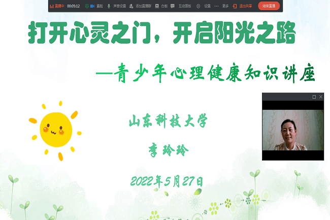 5月27日,根据青岛市教育局“心理专家进校园”工作安排,足球现场直播比分 辅导员、校大学生心理健康教育中心咨询师李玲玲为全校500余名初中生开展了以“打开心灵之门,开启阳光之路”为主题的线上心理健康教育讲座。