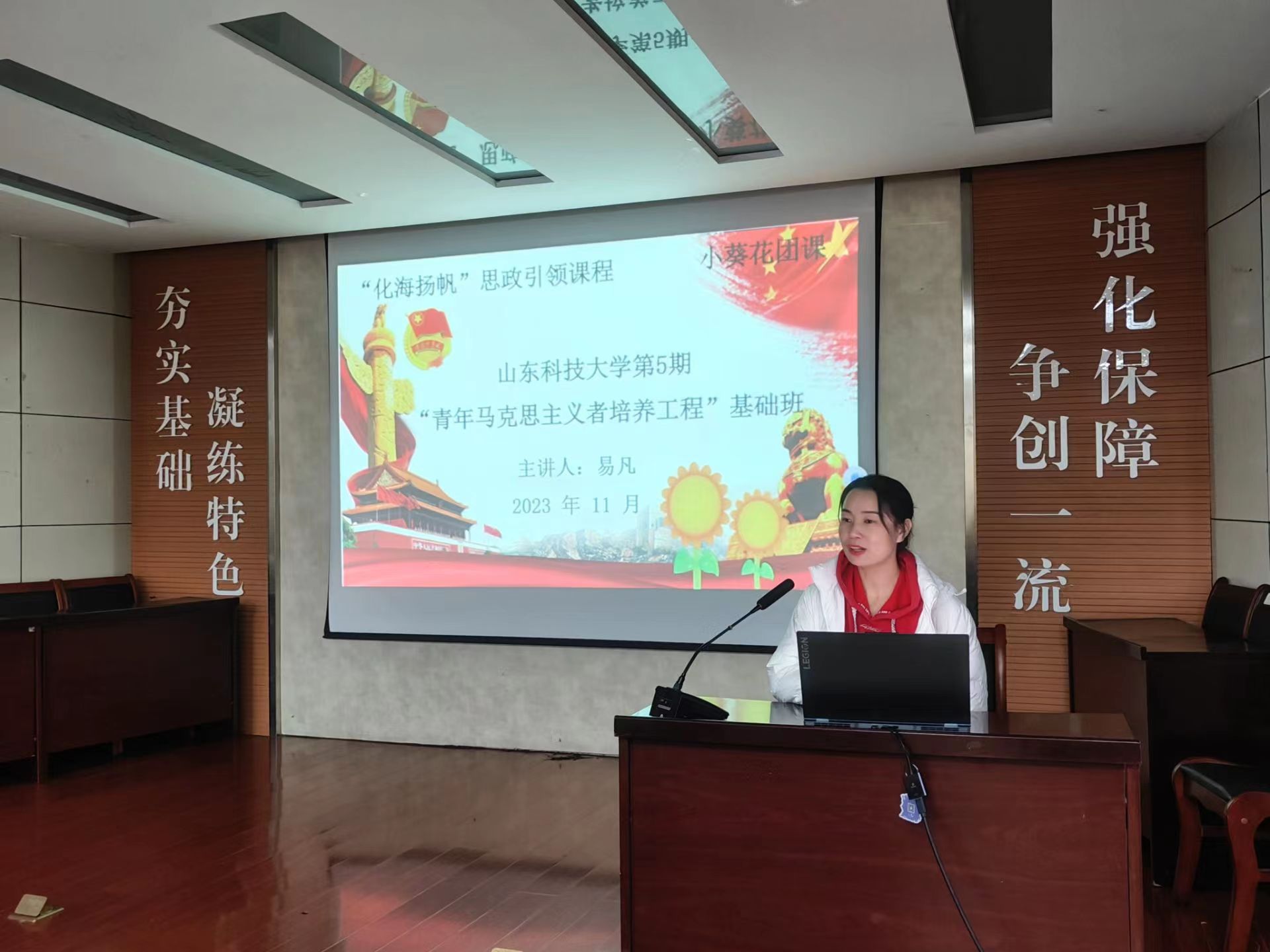 2023级本科生团支书于于沁灵、邢一策等简单介绍了自己为什么报名参加“青马工程”,以及想要怎样进行“青马工程”的学习。随后,各班班长、团支书依次上台发言,生物制药2023-1班班长项华森首先说道,做别人没做过的事,参加别人没参加过的活动,得到的也比别人更多,付出终会得到回报。之后其余班长、团支书依次进行了发言,大家兴致高昂,现场气氛热烈。最后,易凡老师总结讲话,她表示,未来属于青年,希望寄予青年。青年大学生要认真学习贯彻党的二十大精神,坚定理想信念,筑牢精神之基,厚植爱国情怀,矢志不渝跟党走,以实现中华民族伟大复兴为己任,增强做中国人的志气、骨气、底气,不负时代,不负韶华,不负党和人民的殷切期望。