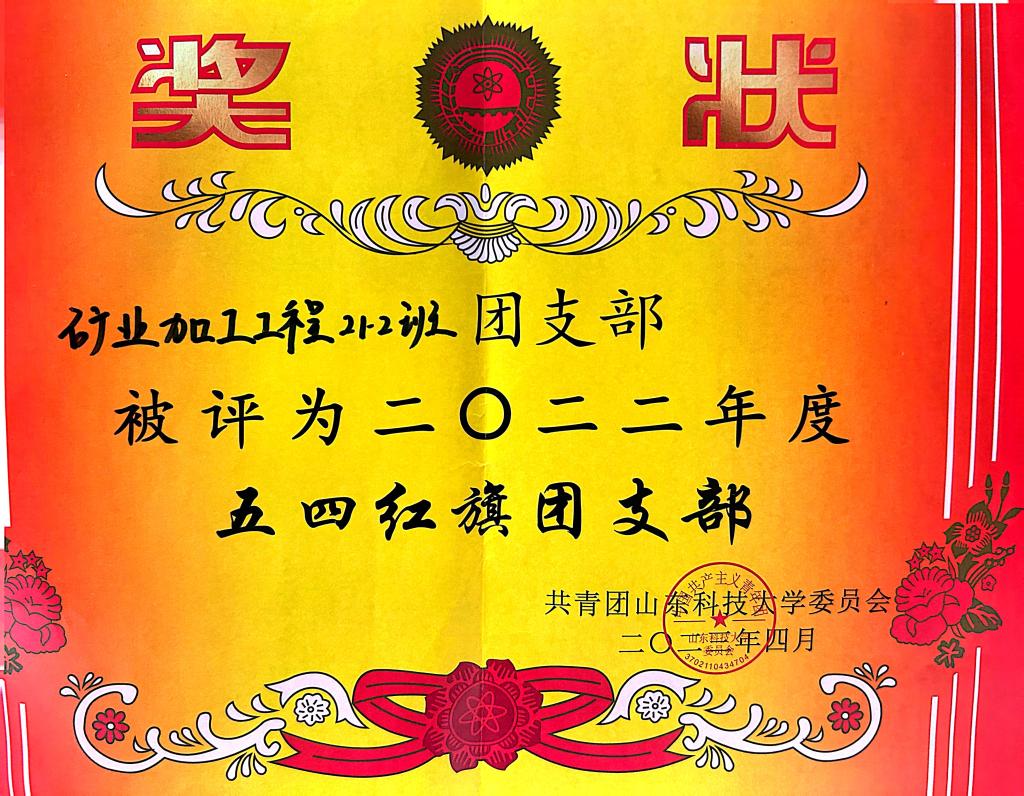 精神中“政治过硬,信念坚定”的思想政治底蕴,先后荣获山东科技大学先进班集体、山东科技大学2023年度五四红旗团支部等集体荣誉称号。