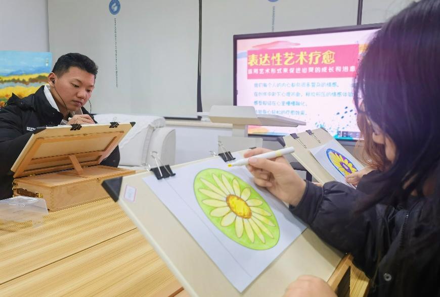 承办,将美育与心育进行有机结合,以“画出我心晴”为主题,开设了“曼陀罗绘画”“分格漫画”“房树人心理画”等多个艺术表达项目,充分发挥了艺术的情感宣泄和情感沟通作用,参与者在心理主题下进行绘画涂鸦,通过艺术的形式表达内心情感,同学们在专心创作中不知不觉释放了压抑的情绪,提升了自我认识水平。“在一个学累了的下午,静下来涂涂画画,真的有被治愈到。”范艺嘉同学这样描绘活动对于她的意义。“我在活动中负责教大家曼陀罗绘画,在活动中轻音乐、有色彩、有同伴,疗愈是自然产生的过程。”现场足球成绩
