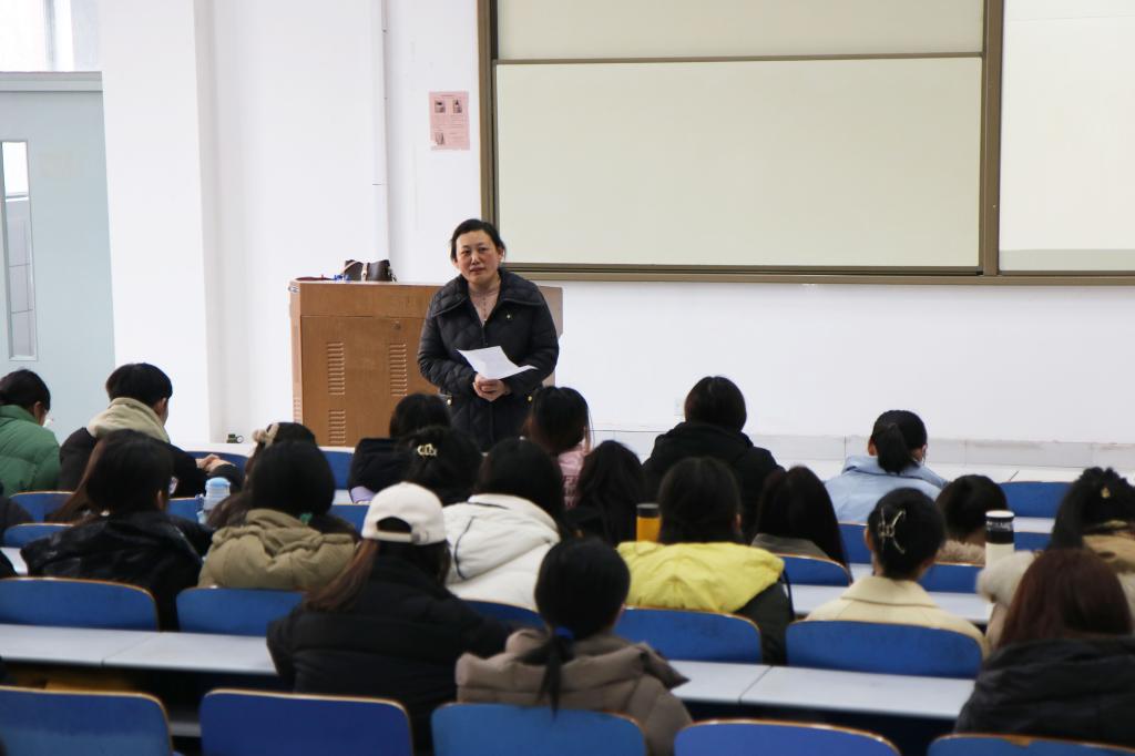 会议伊始,李玲玲对同学们致以新年的问候,同时提醒同学们尽快调整状态,投入新学期的校园生活。随后,她对同学们上一学期的学习、纪律、宿舍卫生及安全等情况进行总结,并提出新学期的要求。她强调,大三下学期是大学生活中的关键学期,同学们应该提升自身执行力,养成良好的学习习惯。随后,李玲玲结合今年考研初试成绩情况,详细讲解了大学毕业后不同的去向选择。她指出,大三学年是同学们人生规划的关键时刻,同学们需要认真思考自己的兴趣、能力和目标,制定出适合自己的未来规划。最后,李玲玲结合真实案例,从电信诈骗、宿舍安全等方面重点强调了校园安全问题,并带领同学们共同观看了安全警示片。