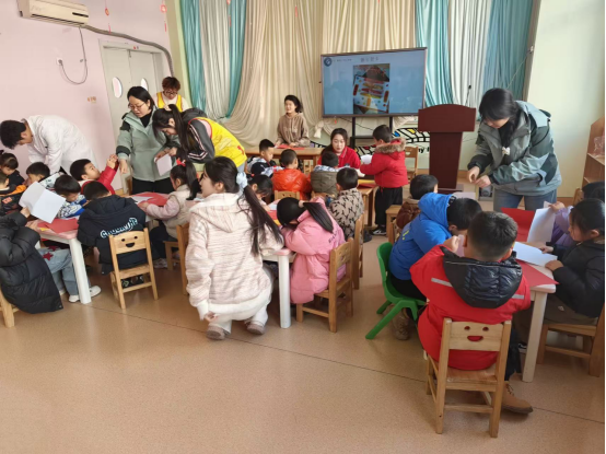 “DIY”手工协会会长赵雅茹的手工课堂开始了。她组织志愿者们把带来的原材料分发到每个小朋友手中,耐心地指导小朋友们制作了新年贺卡。制作完成后,小朋友们纷纷展示自己的作品,用稚嫩的语声表达对农历年的美好祝福。最后,参加活动的双方师生拍照合影留恋,整场实践活动在一派欢乐祥和的气氛中结束。